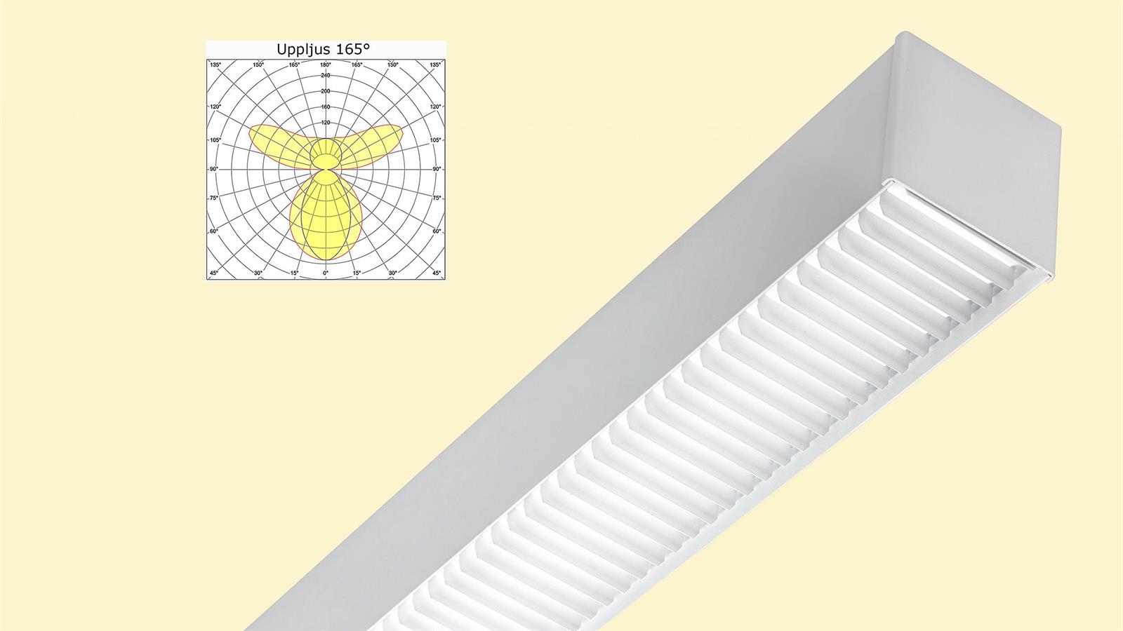 - Extra bred ljusfördelning uppåt för uniform och kraftfull indirekt belysning